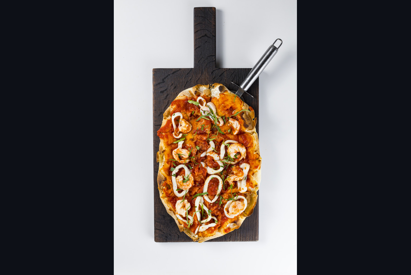 Соус помодоро, чеснок, кальмары, креветки, масло оливковое