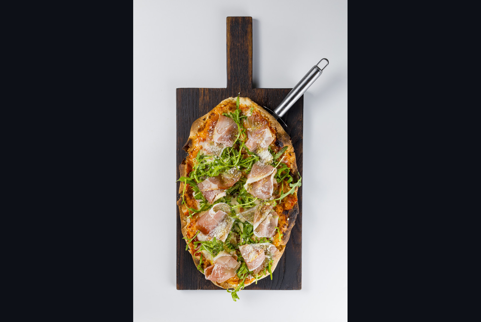Соус помодоро, моцарелла, шпек, руккола, грана падано