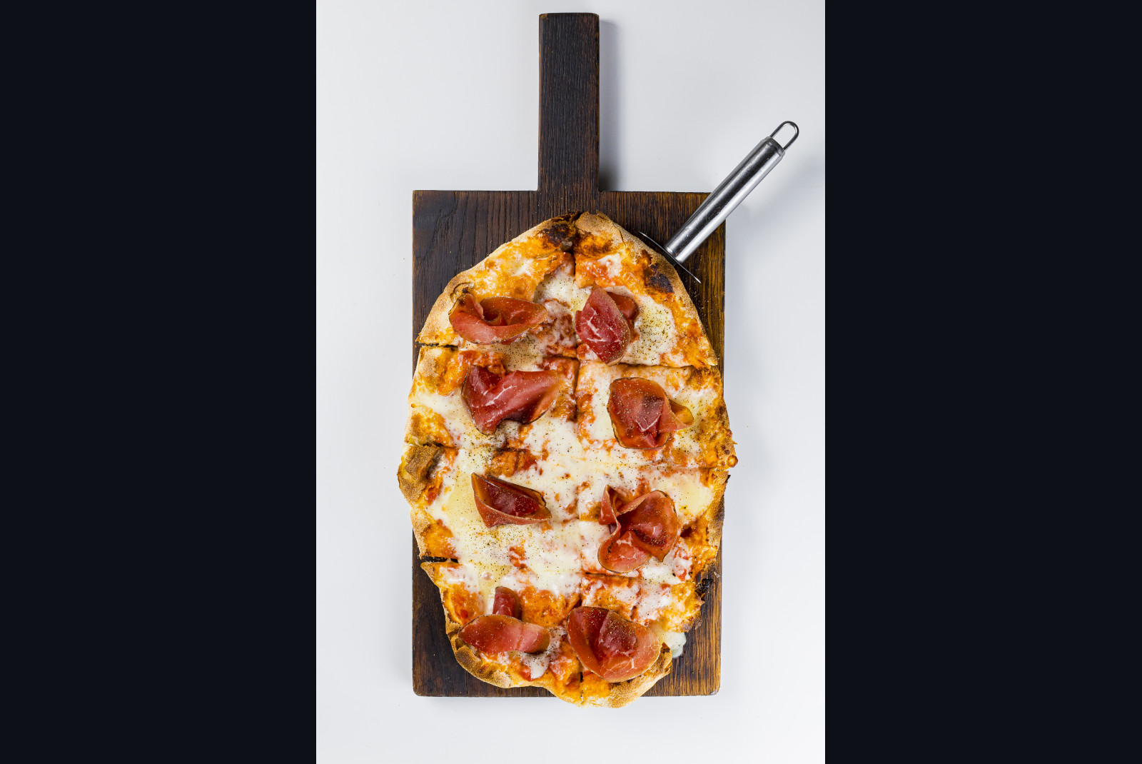 Соус помодоро, моцарелла, брезаола, таледжио, оливковое масло, тертый перец